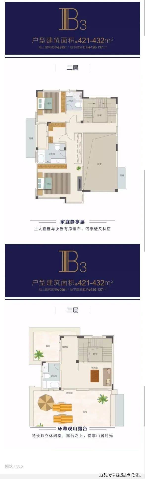 项目产品户型上,客厅双层挑空6.4米层高;地下室3.3米层高,南北双采光井设计;户户景观露台,直面佘山。主力面积271-372㎡,最后4席。