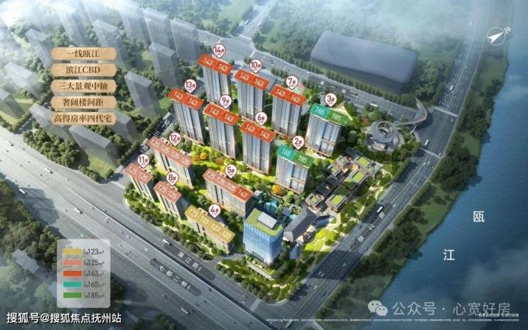 坐拥瓯江黄金岸线,(东南北)三面瞰江景观视野