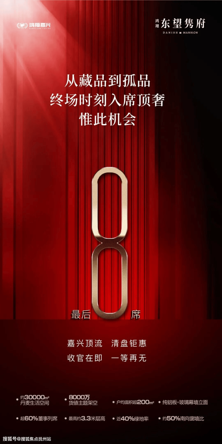 东望隽府,作为众望热盼的纯粹大平层,臻稀的不仅是房子,更是圈层、资源、理想生活和高质量空间的入场门票。东望隽府自入市起,长期霸屏热销红盘榜,让塔尖人群竞相争藏,更荣膺克而瑞2022年度浙江十大高端产品。截至目前,东望隽府,仅剩最后8席,错过不再有!