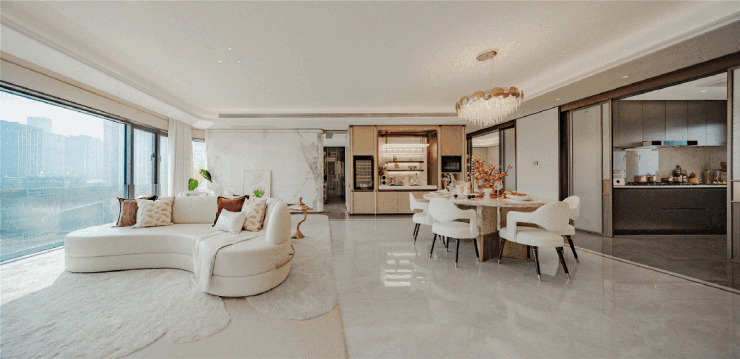 此外项目在装修中还搭载全屋华为智能系统,掌纹识别解锁、提前调节室内温湿度、远程操控家电、扫地机器人预埋上下水,用科技彻底解放双手,实现高效智慧居家体验。