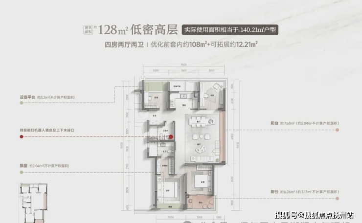 139㎡四房两厅三卫:【实现岛台空间+4房+1功能房】功能升级,实际面积相当于市面上在售160㎡使用面积