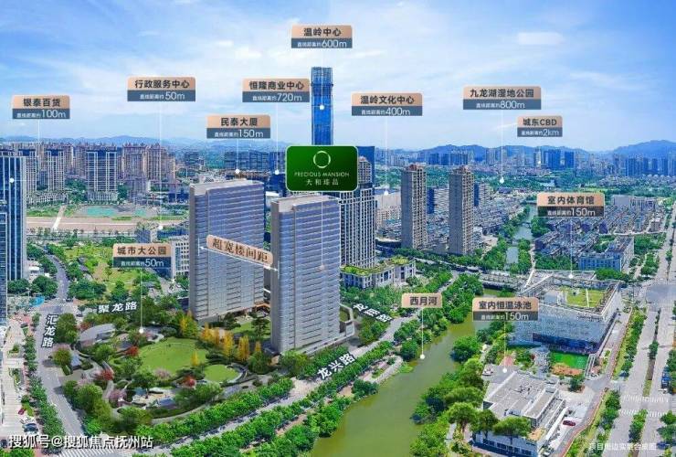 而在它的窗外,一边是由温岭最大商业体银泰城、温岭第一高楼温岭中心,以及行政服务中心、温岭文化中心等构成的城市天际线,一边是以西月河、万方市政公园、728街区公园、七境瑧园串联的生态绿洲,大尺度观景视野下,所谓“坐拥天下”,便是这般感受。