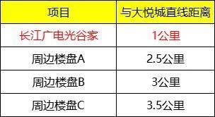 没有对比就没有伤害。光谷中心城其他在售楼盘到大悦城基本都在3公里以上,长江广电光谷家与大悦城直线距离不到1公里。住在这里,不用担心堵车,穿过公园就能到大悦城逛街购物看电影。